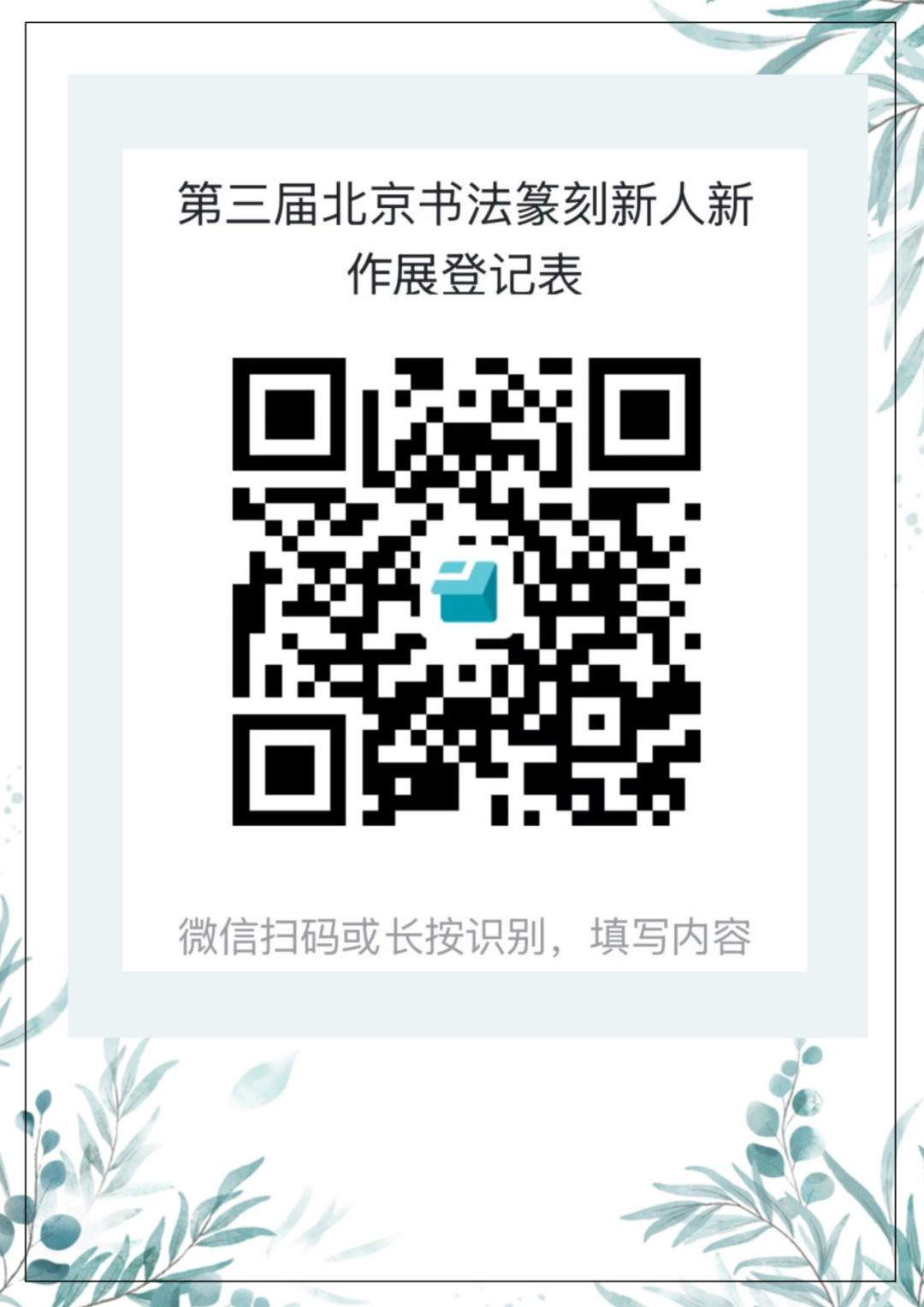 3.为便于准确登记和及时联系作者,请扫描下方二维码,认真填写《第三届北京书法篆刻新人新作展登记表》。