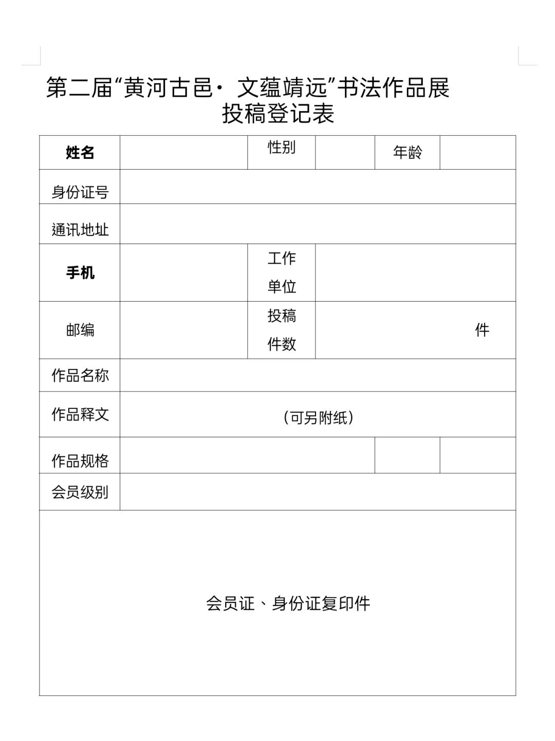 附件:第二届“黄河古邑·文蕴靖远”书法作品展投稿登记表