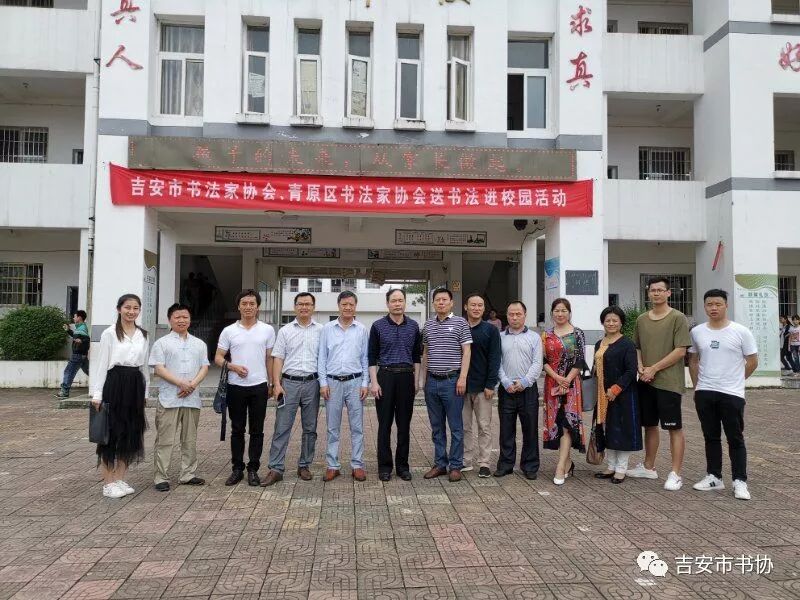 5月16日上午,吉安市书协、青原区书协“送书法进校园活动”走进青原区富田镇中心小学。江西省书协副主席、吉安市书协主席马于强,副主席杨仁根,青原区书协主席胡笃鹏、副主席唐跃琴、李海彦等人参加了活动。