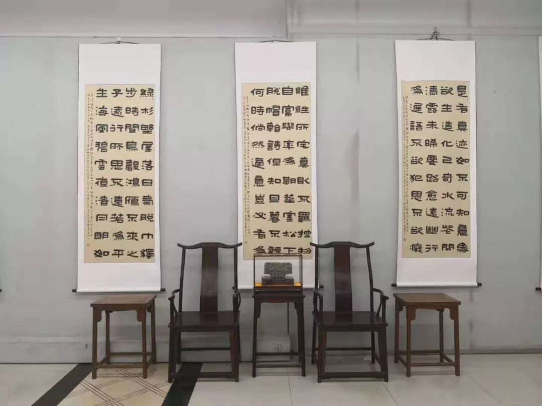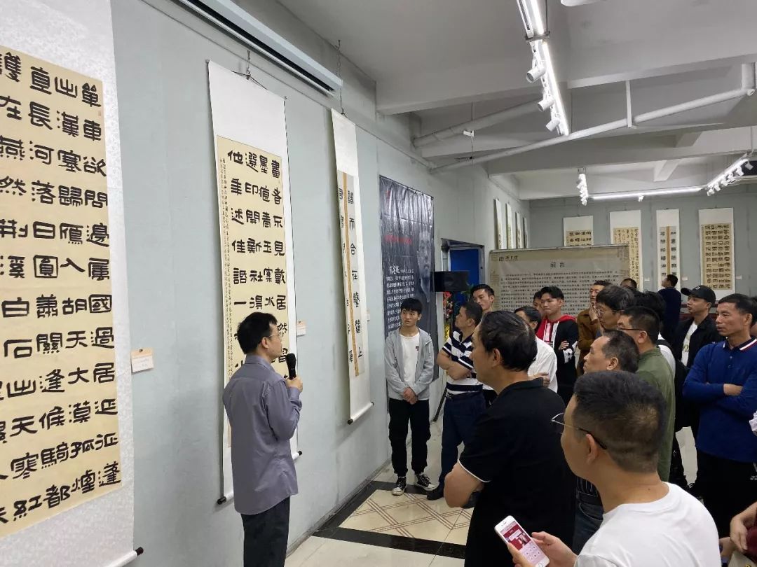 本次展览书法和篆刻作品共70幅,为其近三年专业领域实践研究成果,形式多样,面貌突出,体现了雄强朴厚、自然典雅的艺术风格。本次展览开幕式还有高校学生和社会人员等共100多人参加。